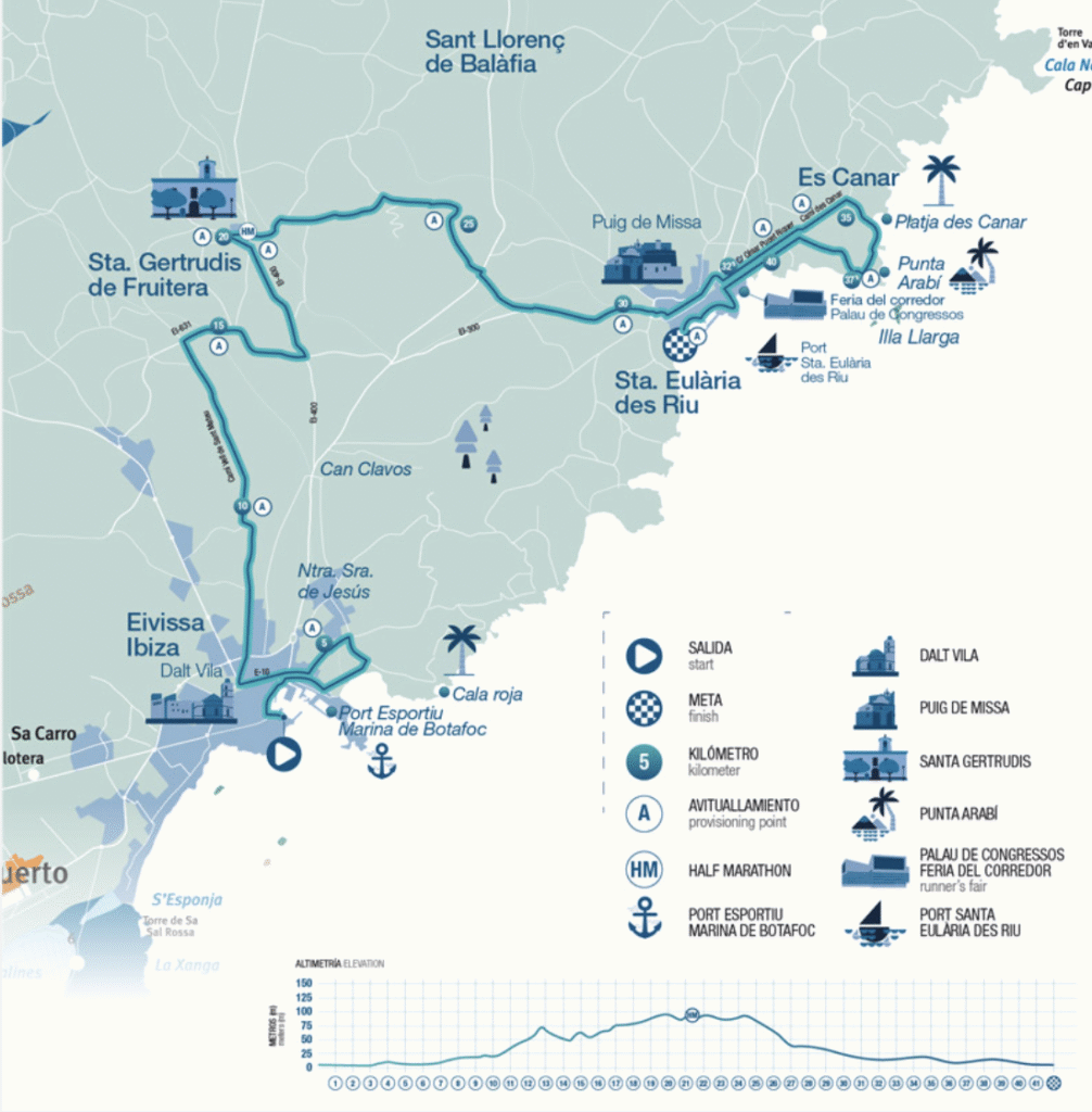 • 🕑 11:15 h aprox. – Llegada del primer atleta a la línea de meta en el Paseo Vara de Rey – Ibiza.